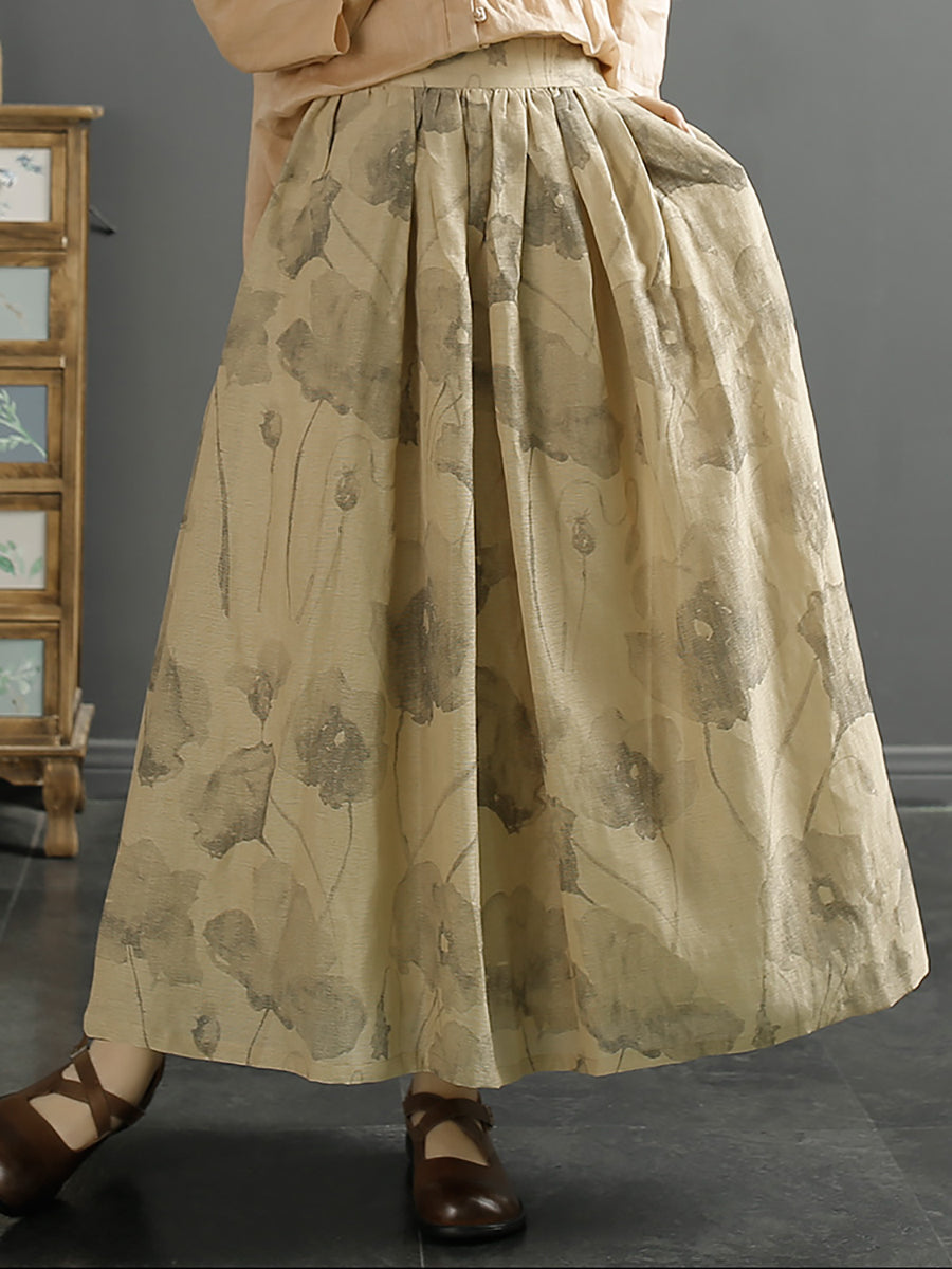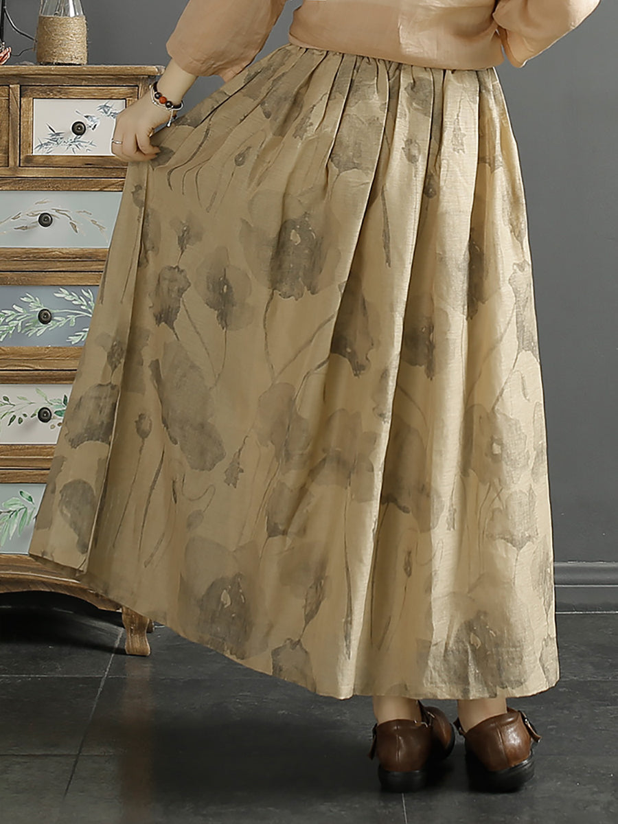 Women Summer Ink-print Shirred Loose Skirt KL1027
