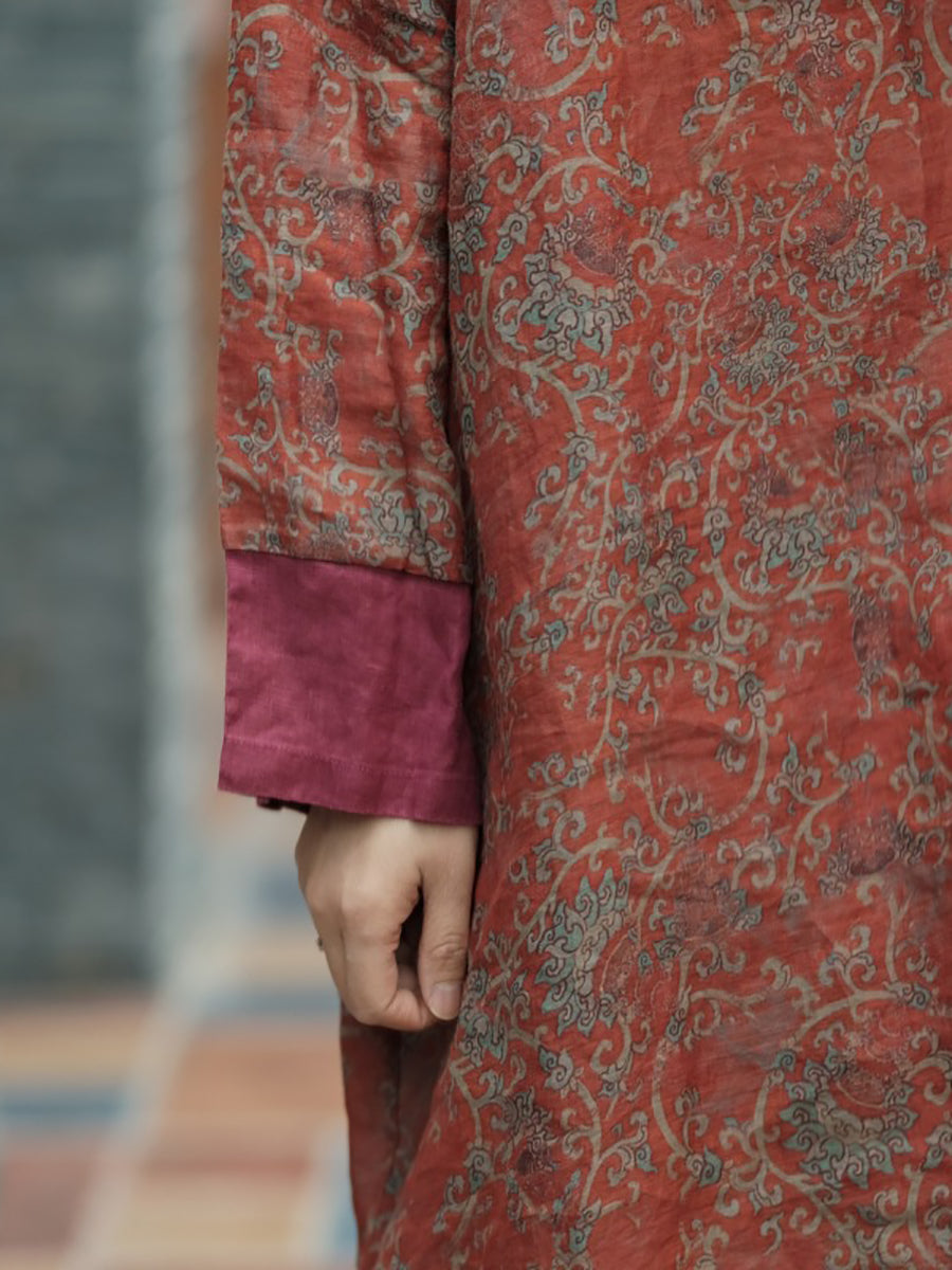 Women Summer Vintage Floral Spliced Ramie Dress OO1037