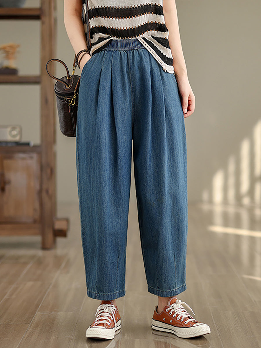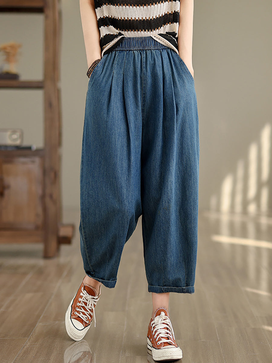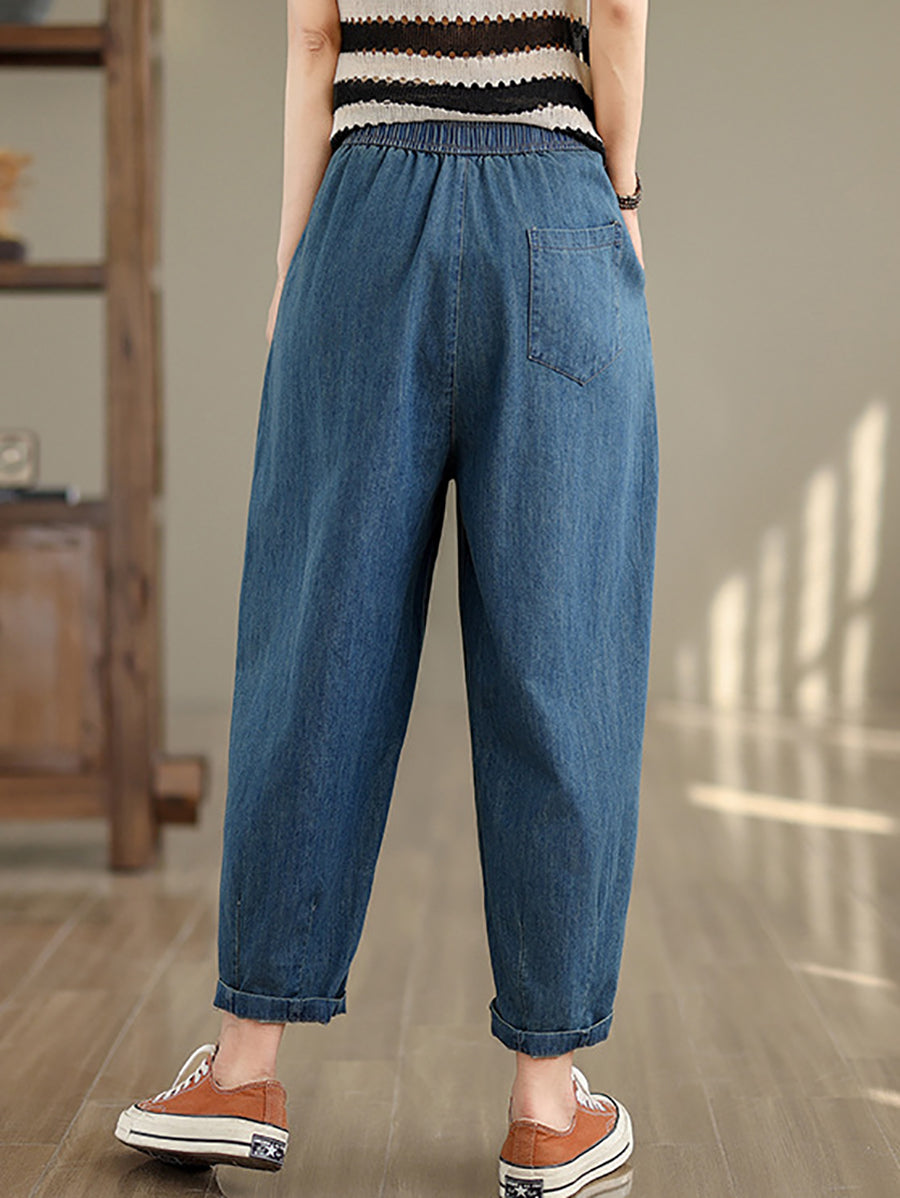 Women Summer Vintage Solid Denim Loose Harem Pants OP1007