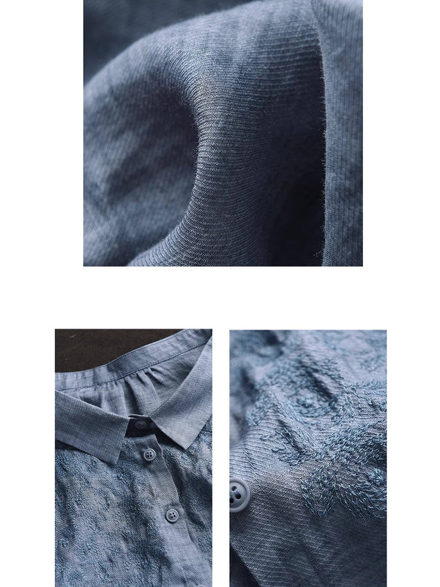 Women Vintage Embroidery Summer Ramie Loose Shirt SC1003
