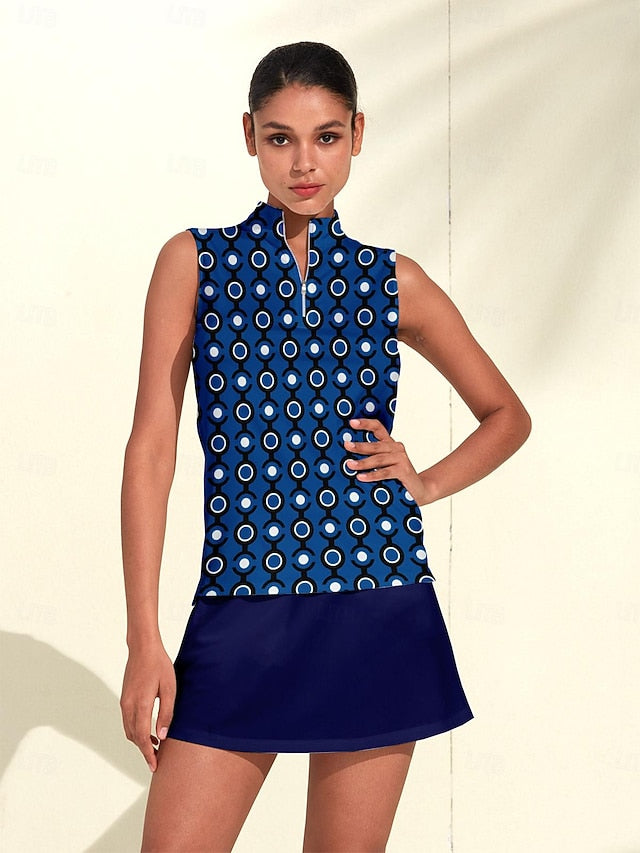 Gender: Women's, Age Group: Adults', Sports Clothing Sub Category: Golf Polo Shirt, Clothing Type: Top, Activity: Golf, Tennis, Pickleball, Occasion: Sports, Athleisure, Season: Summer, Fit Type: Regular Fit, Elasticity: High Elasticity, Function: Soft, Breathable, Moisture Wicking, Fabric: Spandex, 21 GRAMS Airful 2.0 Fabric, Polyester, Sleeve Length: Sleeveless, Design: 1/4 Zip, Stand Collar, Pattern: Animal, Look After Me: Wet and Dry Cleaning, Washable,