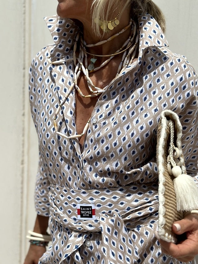 Accessories not included: Accessories not included, Dresses Type: Boho Dress, Casual Dress, Swing Dress, Fabric: Polyester, Gender: Women's, Design: Print, Buttons, Occasion: Daily, Style: Casual, Fit Type: Regular Fit, Dress Length Type: Maxi Dress, Neckline: Shirt Collar, Sleeve Length: 3/4 Length Sleeve, Elasticity: Micro-elastic, Look After Me: Hand wash, Dry clean only, Machine wash, Pattern: Geometric, Season: Spring, Fall, Summer,