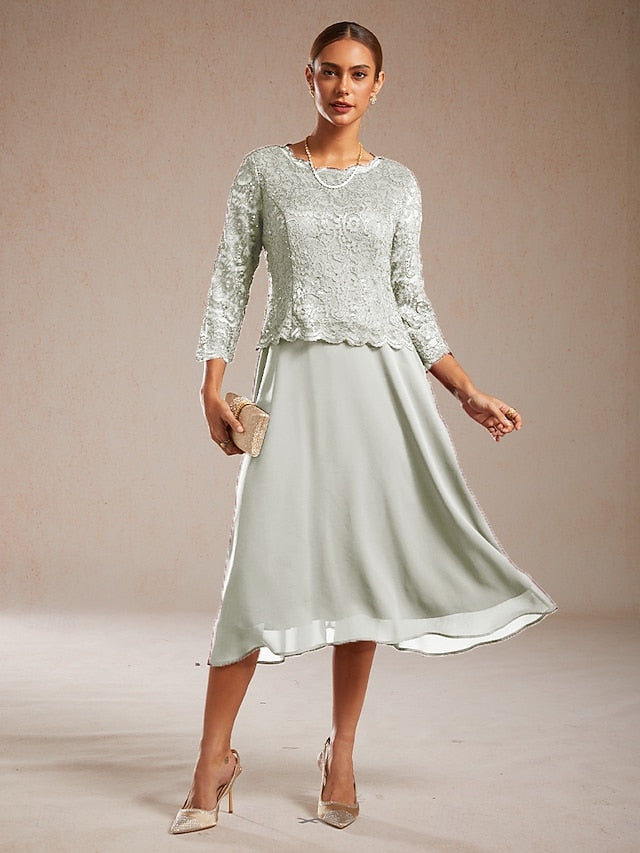Dresses Type: Chiffon Dress, A Line Dress, Fabric: Polyester, Gender: Women's, Occasion: Wedding Guest, Daily, Design: Lace, Sequins, Size Suggestion: standard size, select your usual size, Style: Elegant, Dress Length Type: Midi Dress, Neckline: Crew Neck, Sleeve Length: 3/4 Length Sleeve, Elasticity: Micro-elastic, Look After Me: Wash with similar colours, Machine wash, Pattern: Solid Color, Season: Spring,