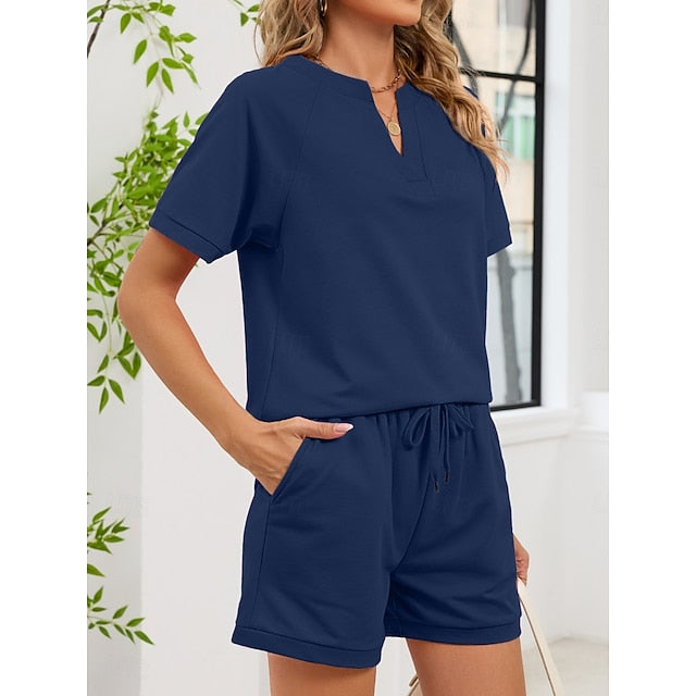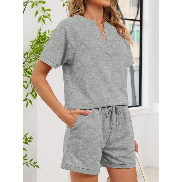 Gender: Women's, Accessories not included: Accessories not included, Style: Streetwear, Fashion, Occasion: Outdoor, Casual, Daily, Tops Type: Shorts Sets, Bolero Top, Neckline: V Neck, Fabric: Polyester, Design: Drawstring, Sleeve Length: Short Sleeve, Elasticity: Stretchy, Look After Me: Wash with similar colours, Hand wash, Machine wash, Pattern: Plain, Season: Spring, Summer,