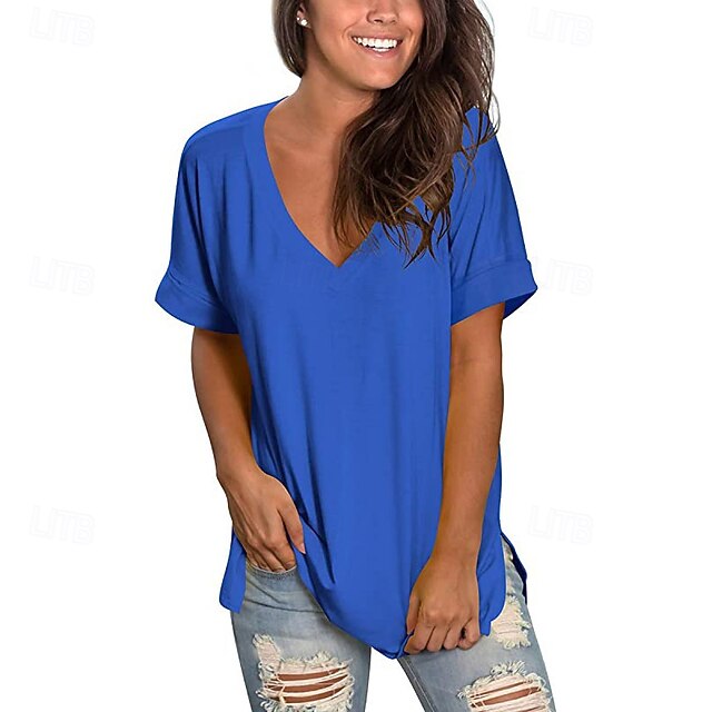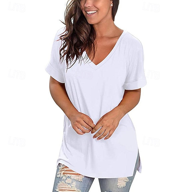 Fabric: Polyester, Gender: Women's, Tops Type: T Shirt, Tee Top, Occasion: Weekend, Going out, Daily, Style: Classic, Casual, Fashion, Category: T-Shirt, Fit Type: Loose Fit, Regular Fit, Neckline: V Neck, Sleeve Length: Short Sleeve, Elasticity: Stretchy, Micro-elastic, Look After Me: Washable, Hand wash, Machine wash, Top Length: Regular Tops, Long Tops, Pattern: Solid Color, Graphic, Plain, Season: Spring, Summer,