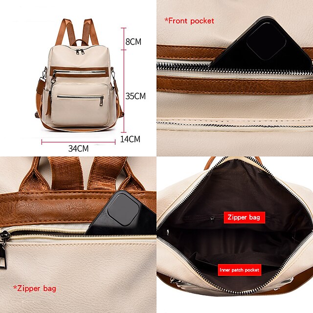 Gender: Women's, Men's, Type: Commuter Backpack, Material: PU Leather, Embellishment: Zipper, Pattern: Color Block, Occasion: Daily, Outdoor, Width (cm): 15, Length (cm): 32, Height (cm): 33, Function: Waterproof, Large Capacity, Adjustable, Durable, Anti-Shock, Category: Backpack,